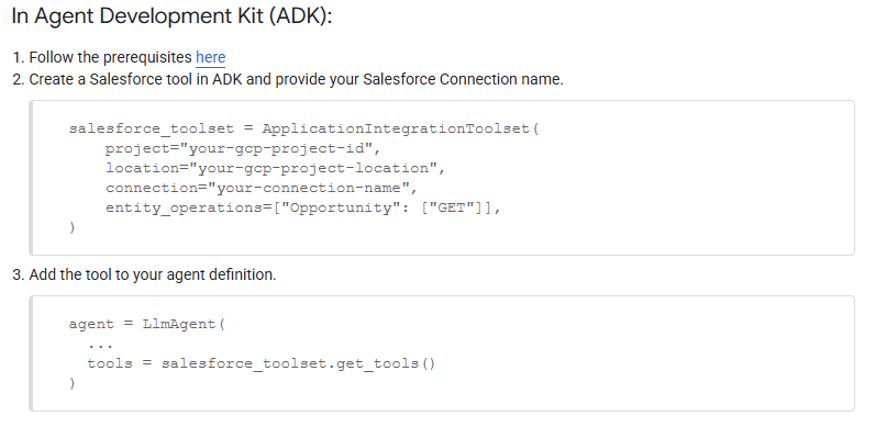 You can check the list of other available agents in the Agent Garden. For example, if you search for the Salesforce agent, the following description will appear.